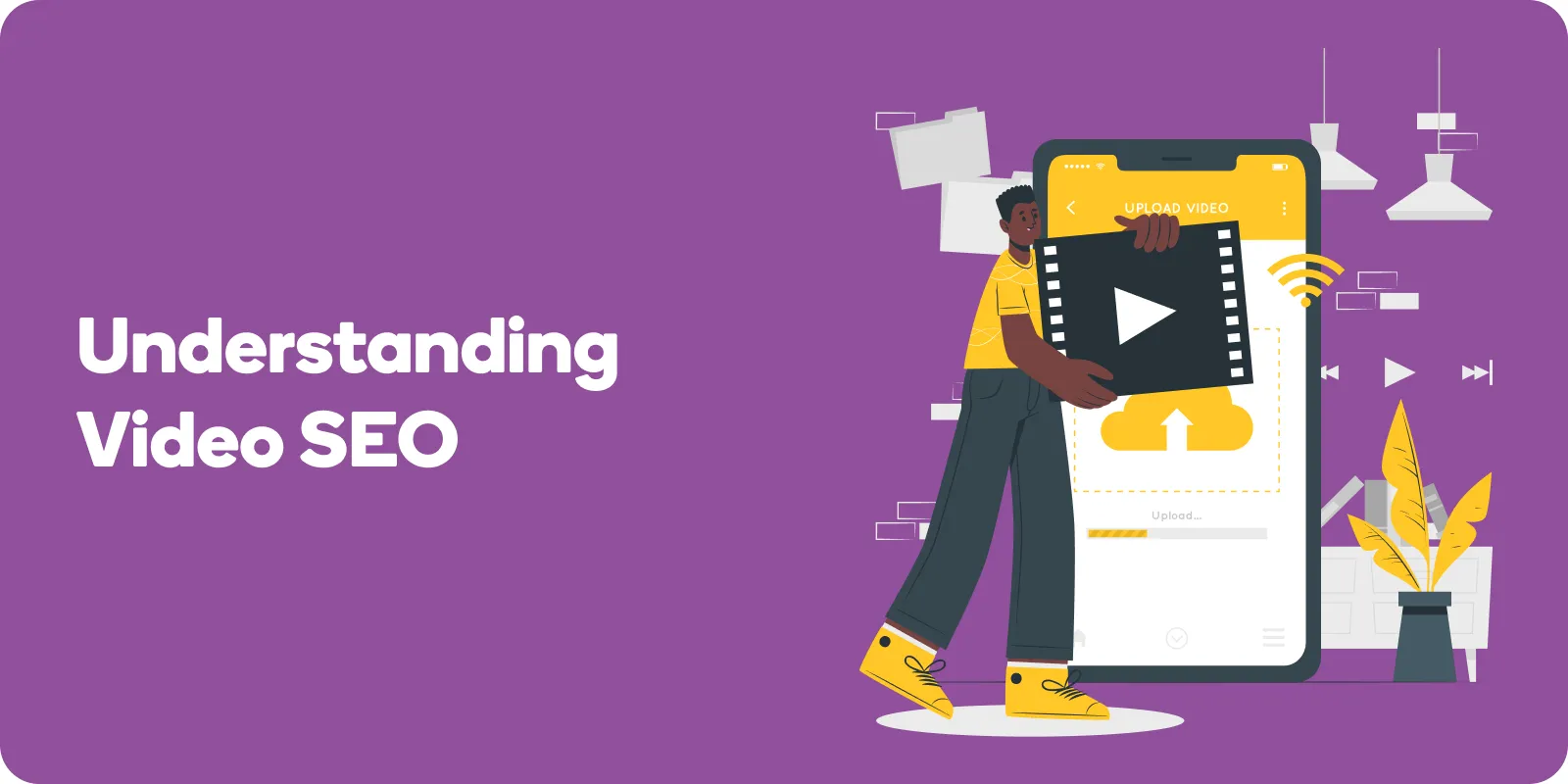 Video SEO (Search Engine Optimization) involves optimizing your videos to be indexed and ranked on the search engine results pages for relevant keyword searches. This includes several elements like the video title, description, tags, and transcript, which are all used by search engines to understand the content and context of the video.